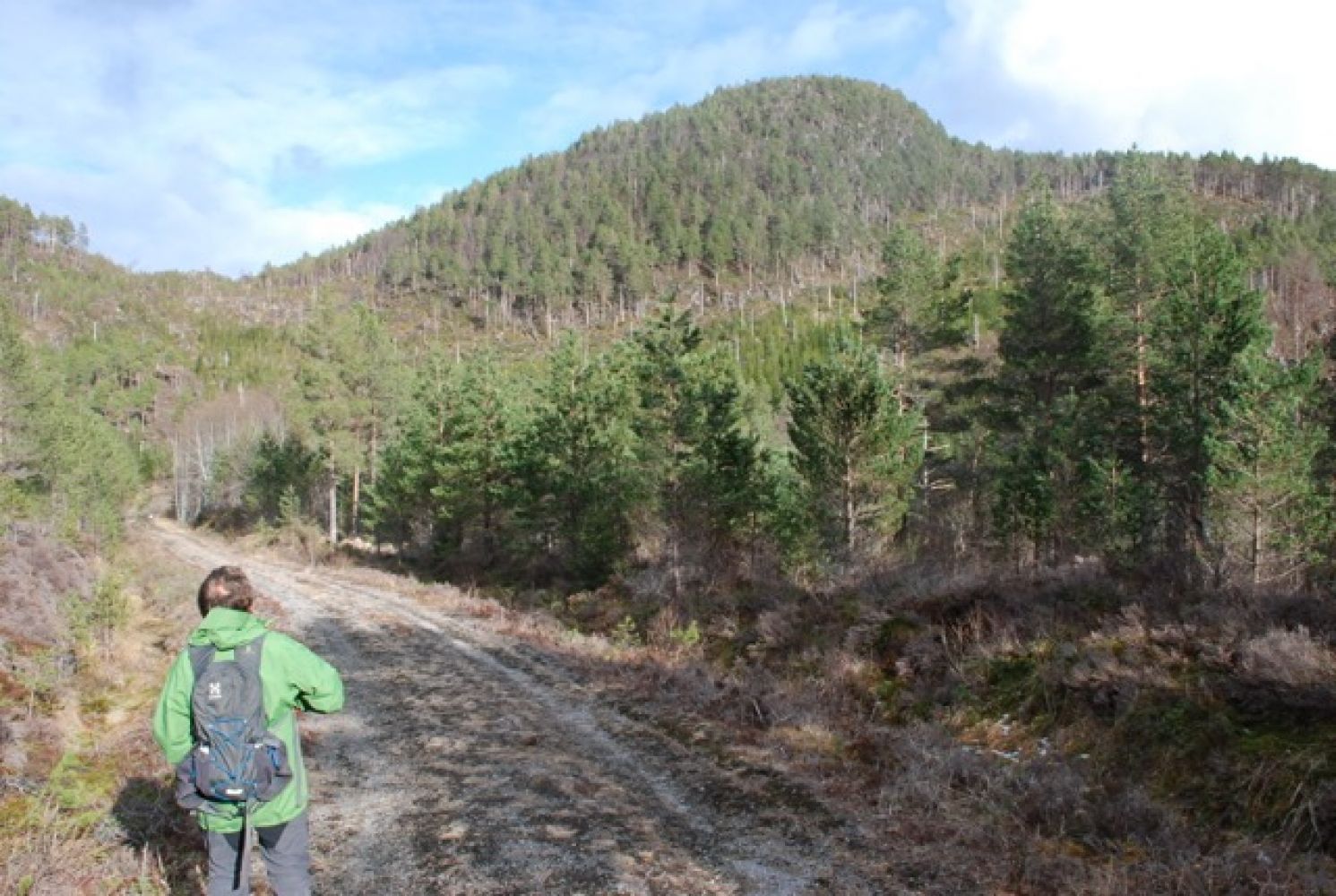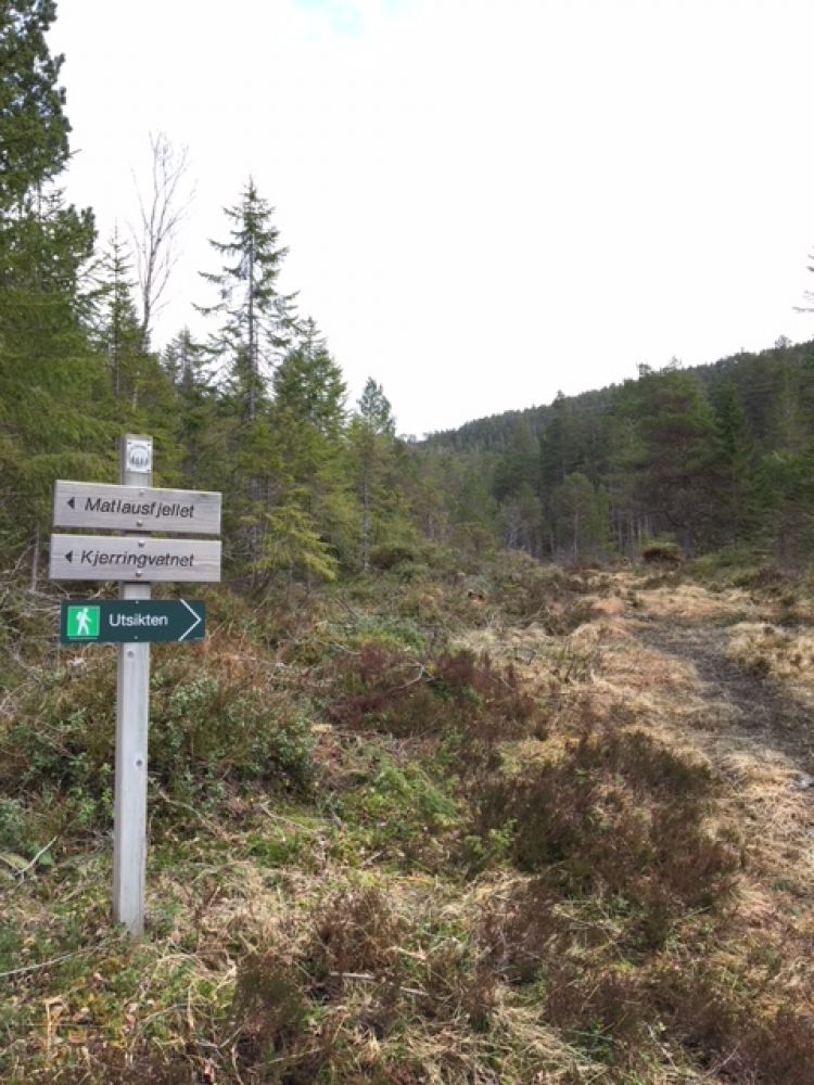 Fra sørenden på parkeringsplassen på Prestmyra går du 80 meter før du tar til venstre. Her står det skiltet mot Utsikten, Hysåsen, Setervatnet og Harpskaret. Du følger lysløypa (bred gruset vei) helt frem til veiskille og tar da til venstre. Skilt mot Utsikten står i krysset og viser retning. Du går fortsatt på bred skogsvei og passerere en gapahuk, Furulunden på høyre side. Etter 100 meter tar du til høyre og forsetter på traktorvei. Freimarka åpner seg og du ser Hysåsen rett mot deg når du går i litt slak bakke innover marka. Hold til venstre der veien deler seg og følg gruset vei. Freimarkas venner har startet arbeidet med oppgradering av gammel skogsvei og du fortsetter på veien innover. På toppen av bakken sees Kristiansund og Nordmøre turistforening sitt treskilt med Matlausfjellet og Kjerringvatnet til venstre. Du går inn til høyre og følger stien og skilt Utsikten. Følg opparbeidet god bred gruset turvei frem til turmålet. Her passer det med en liten hvil og nyt Tustnafjellene. Fuglekasse nr. 61 ser du hengende i treet ved sitteplassen. Det er satt ut gode benker og bord. Gode tursko anbefales da det er vått i skogen i begynnelsen av sesongen. Dette bedrer seg utover sommeren. Ønsker du en lengre tur kan du gå helt til Harpskaret. Anbefaler at du bruker kartet da.