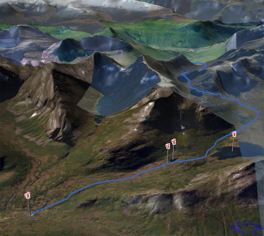 Fra hytta følg stien ned til Storvatnet. Ta til venstre langs vannkanten et stykke og videre innover Espedalen. Litt inne i dalen ta opp stigninga til venstre til Storreset og forbi Fremstevatnet og senere Heimste vatnet. Etter ura, før det begynner å gå ned til Heimste vatnet, er det opparbeidet flott tursti. Følg denne ned Fremstebotn og ned til Valldalssetra.