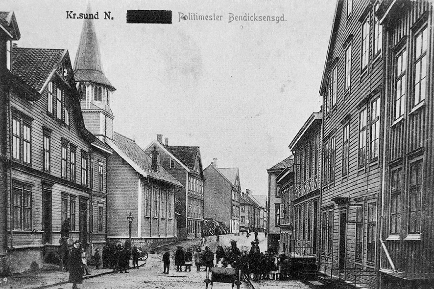 Følg deretter Politimester Bendixens gate tilbake mot Storhaugen helsehus. Gaten er oppkalt etter Christian August Bendixen som var politimester i Kristiansund i 1858-66. Han eide mye av området rundt Rokilde, og der hadde han sommerbolig med parkanlegg og melkekyr.