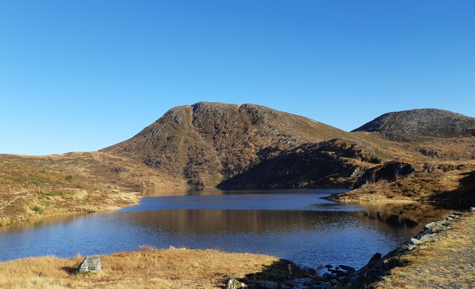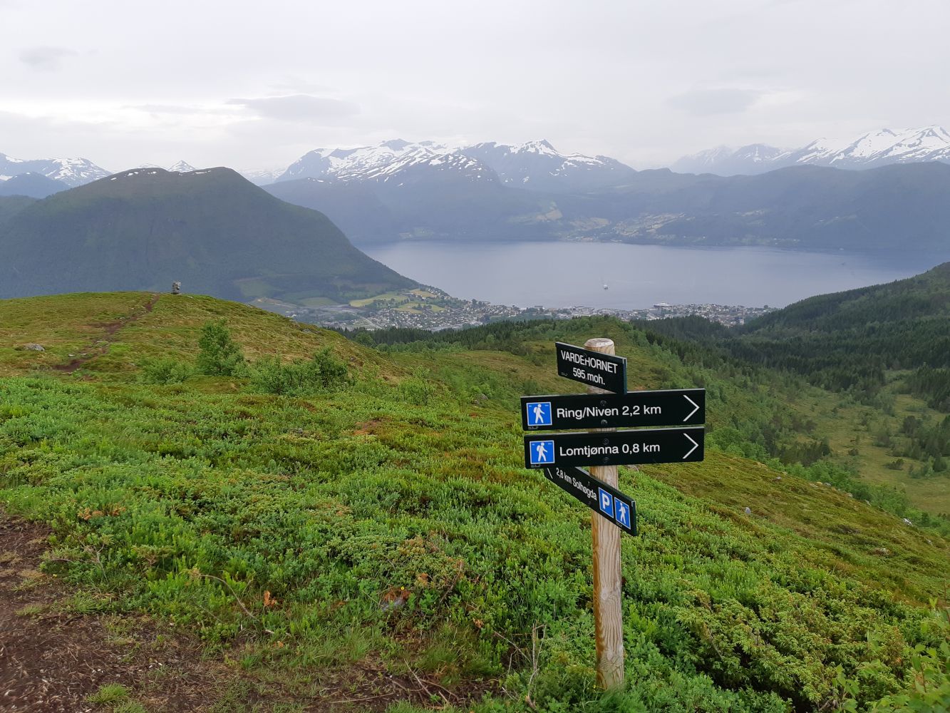 Gå heilt opp til deminga ved Dinglavatnet. Herifrå går stien på ryggen vestover til Vardehornet (skilta).