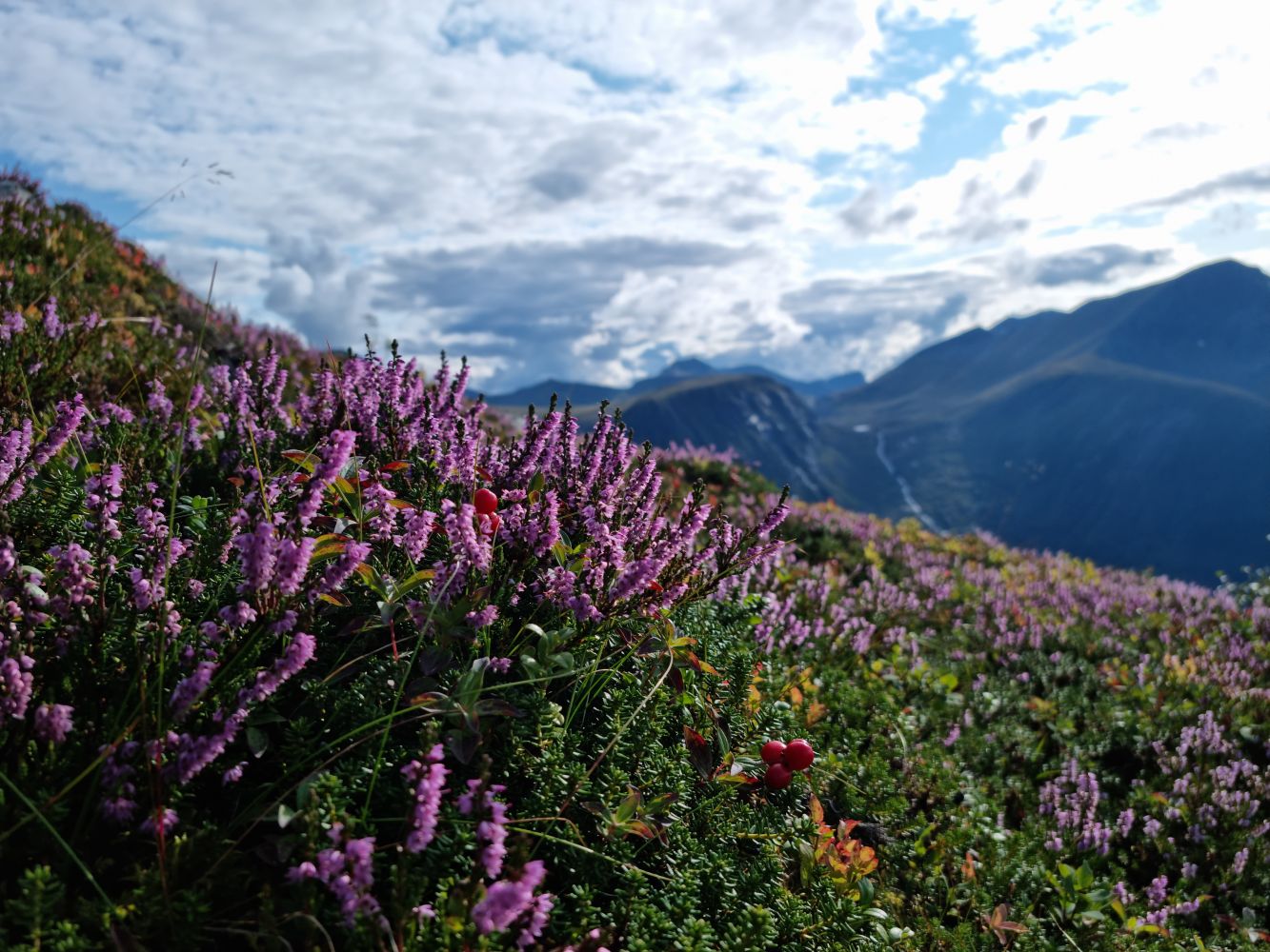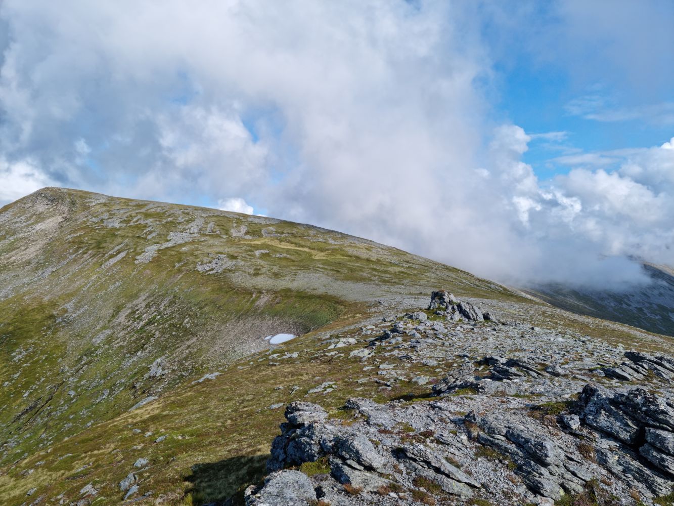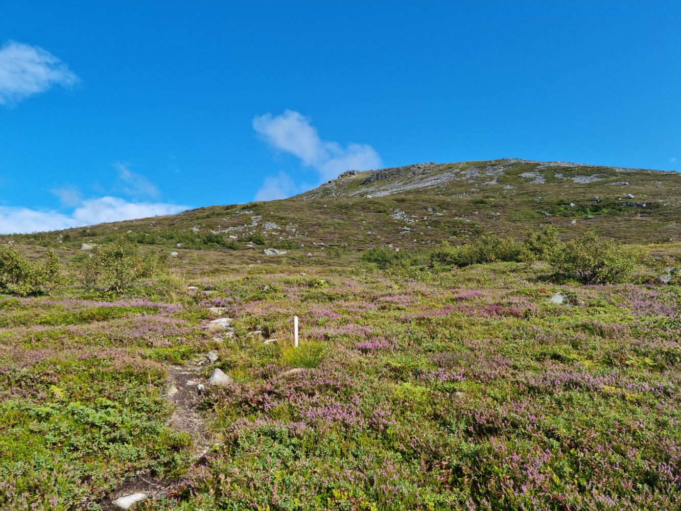 Vidare siktar ein seg inn mot Sætshornet. Fare for litt vått terreng rundt Risanakken, men ganske fin sti vidare oppover. Pass på å følge ruta i kartet vidare, då det går ein del stiar på kryss og tvers i fjellet. Litt steinur, og lite definert sti siste partiet til Sætshornet. Frå Sætshornet er det ganske flatt og fint, med delvis opptrakka sti. Enkelt terreng uansett kor du går, med litt ur til slutt avhengig av kva rute du tek. Du kan gå longs kanten, eller fortsette aust og nå mjukare terreng før du svingar nordover mot toppen.