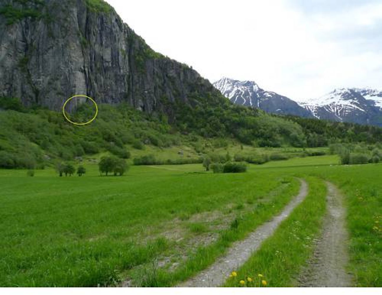 Etter å ha lagt dyrkamarka bak deg, stiger terrenget opp utmarksbeitet. Idyllisik utsikt over Øverås/Åse. Skogen lenger oppe er gamal trolsk urskog. Stien slynger seg mellom mosegrodde steinar, gamle tre og oppunder kjempestore steinar. Før du aner det er du oppunder Vargehola.