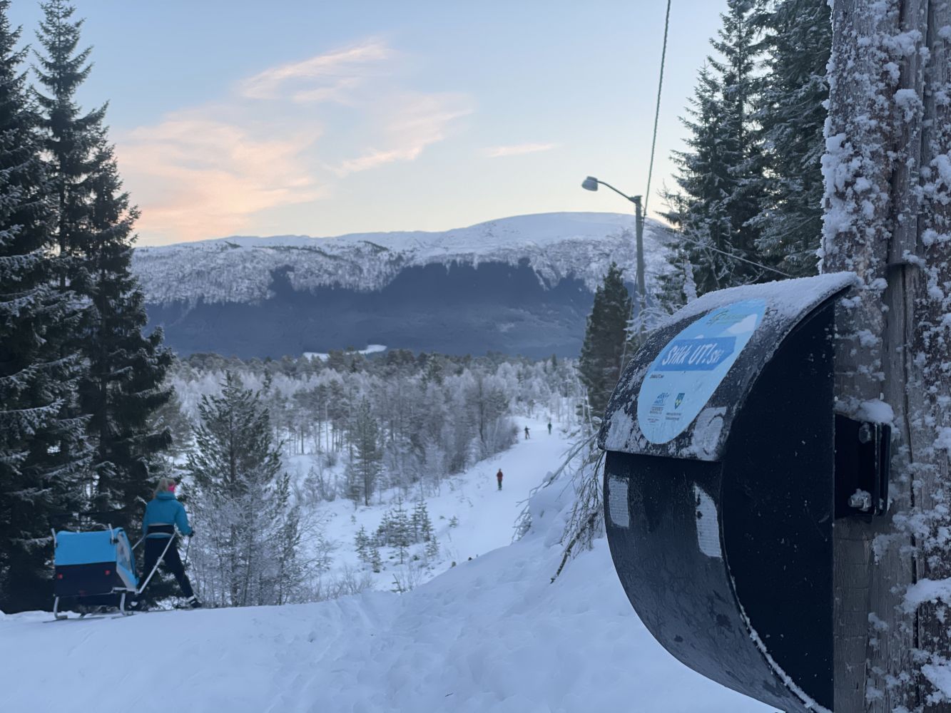 Ta til venstre fra skistadion og følg lysløypa bortover. Løypa svinger til høyre og er passerer et åpent område på venstre side som ofte blir brukt til skileik. Her går løypa litt oppover før en kommer til et kryss der Stikk UT! ski-posten er. Lysløypa slukkes kl 22.00. Vi benytter http://www:loyper.net til å vise hvor og når vi kjører opp løypene.