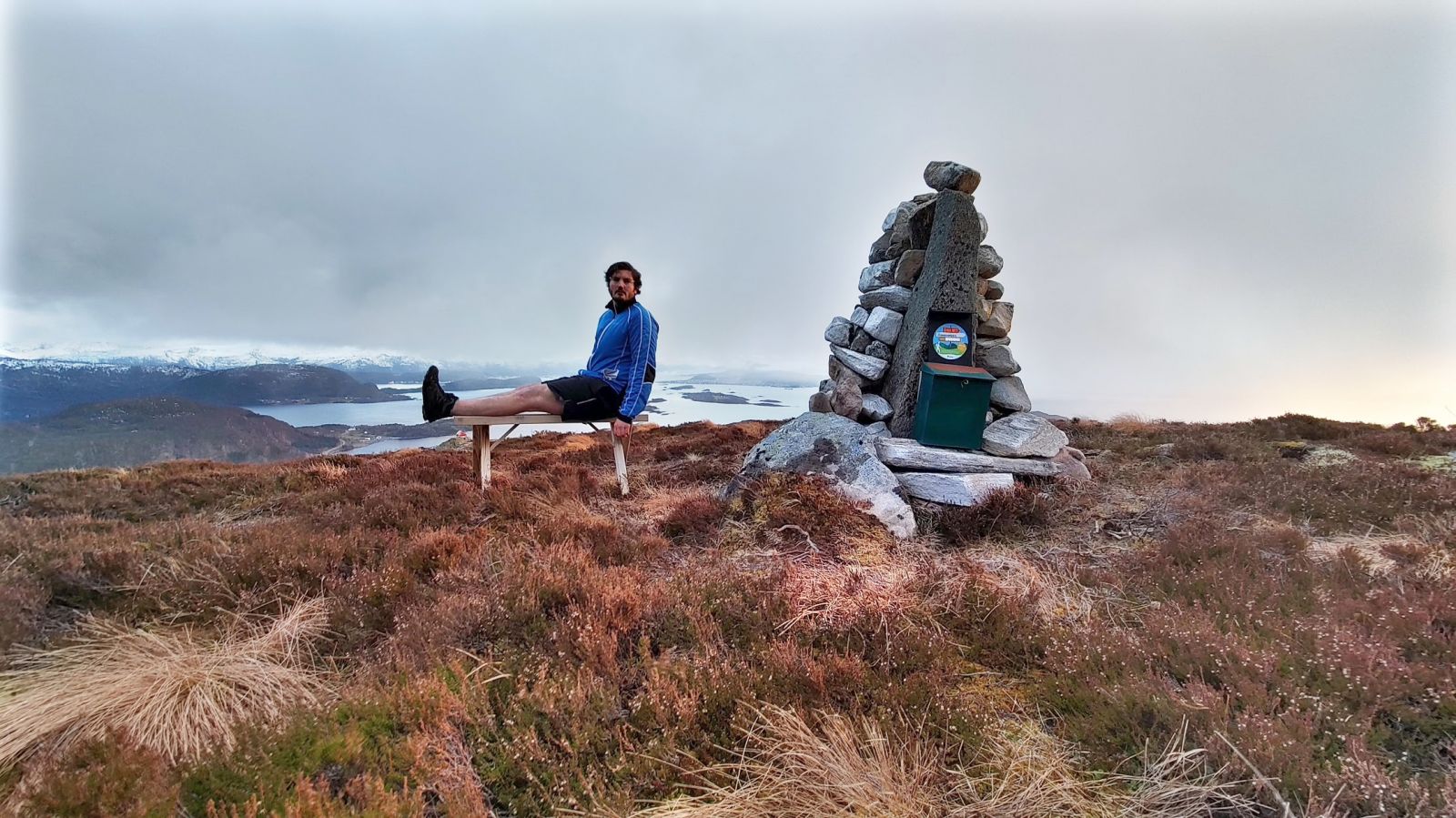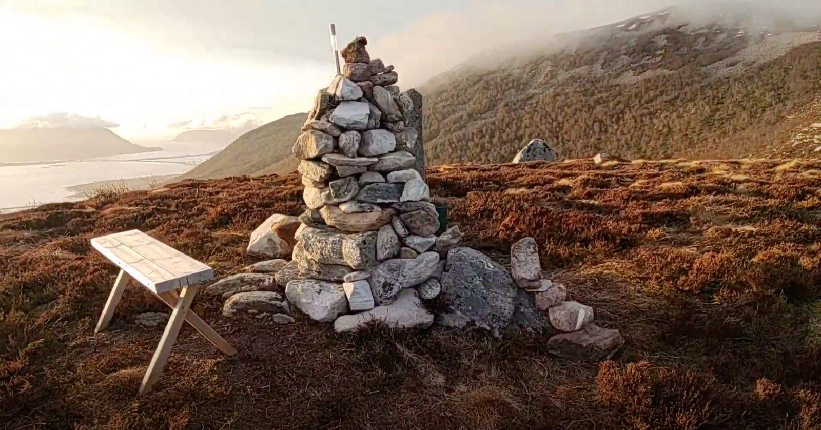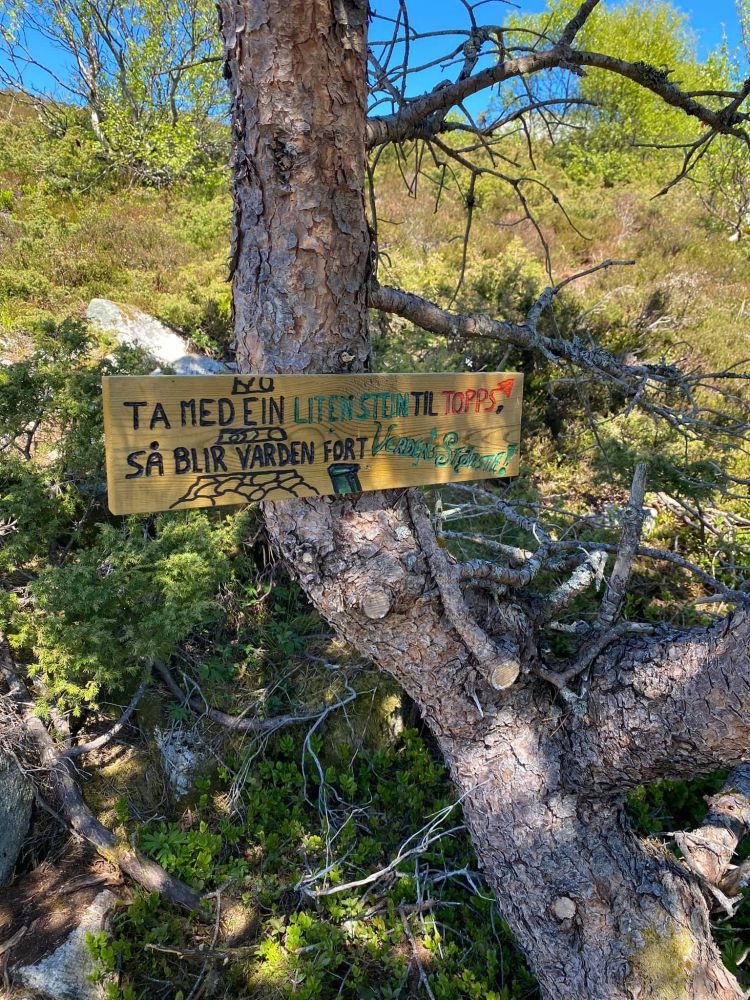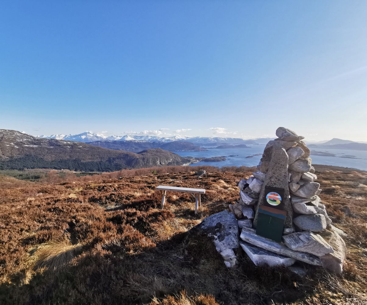 Etter ca 100m igjen kjem eit nytt skilt mot Vegardvarden (høgre). Her er det slakk stigning men veldig godt merka og opptrakka heilt til toppen. På toppen finn du ein benk, ein varde og ei postkasse samt god utsikt over Søvika, Gamlem, Nordøyane og Ålesund.