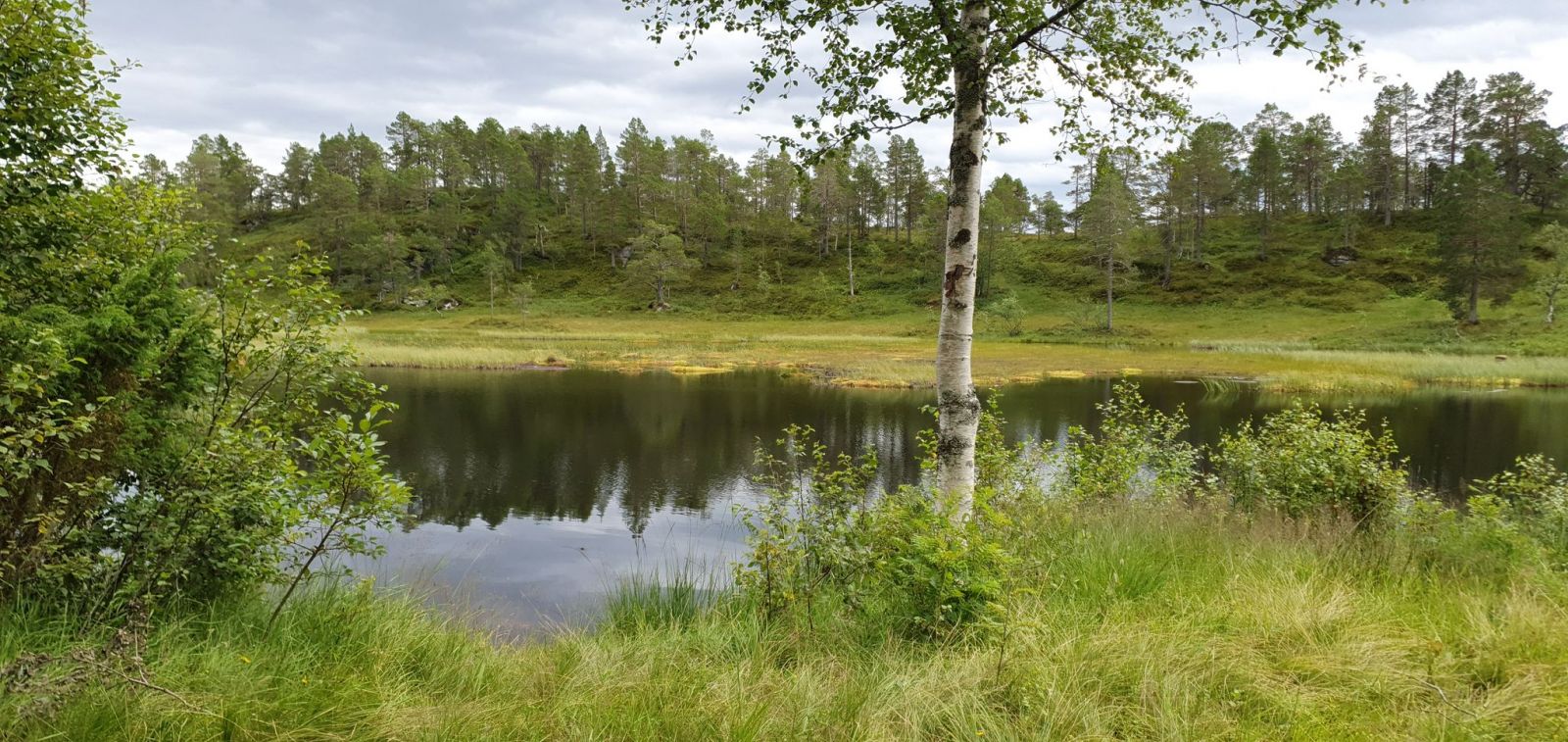 Når du går videre er det fremdeles et lite stykke til du er ved Venåsdammen. Der er det også satt opp en benk for en rast eller hvile, før turen går tilbake til Venåssaga.
