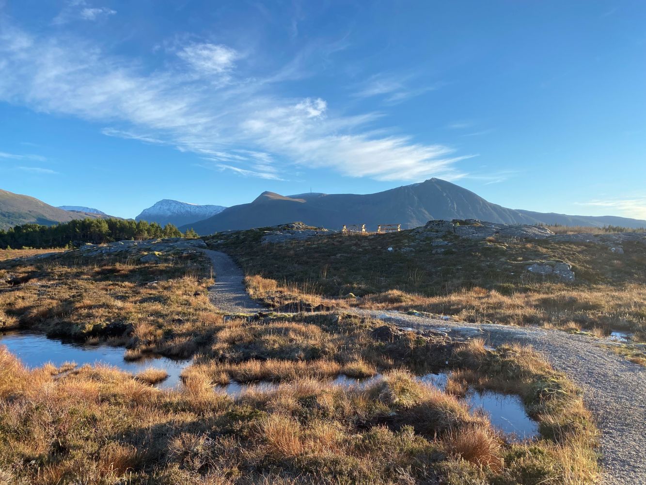Det er en fin liten tur over myrene fra Vikan til Venås. Oppe ved Sandstølen er det hvilebenk og bok. Turen kan gjennomføres med barnevogn.