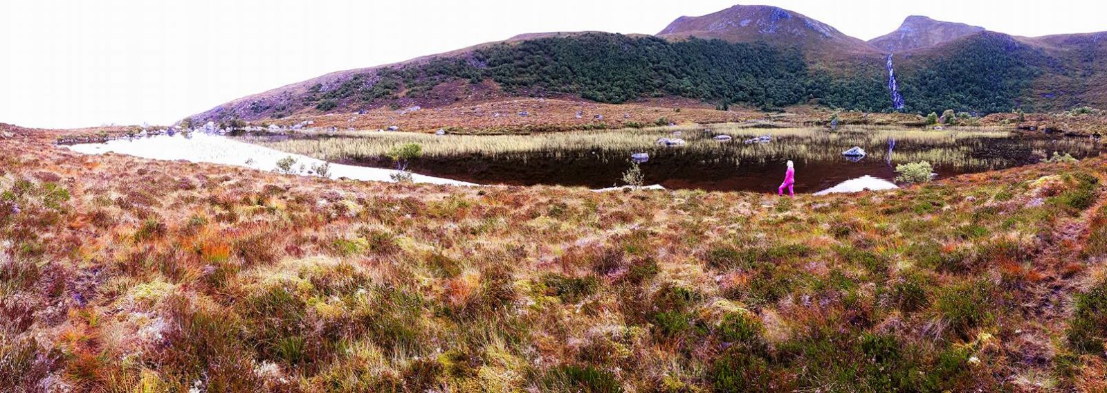 I starten går turen på grusveg langs Fløstranda og du kan kjenne bruset frå havet. Etter eit par hundre meter går vegen over i rås og svingar opp mot høgre. Følg rås som tar av mot høgre og går oppover. Du kryssar elva og her er det godt å fylle på vannflaska. Det er slakk, moderat stigning, og ingen bratte parti. Når terrenget slakkar ut, kjem du til vatnet. Her kan du nyte stille, flott natur, ta deg eit forfriskande bad, eller telte om du ønsker det. Det er og mulig å følge rås vidare opp til Kjerringa, Smørkinna, Signalhornet eller Skolma. Denne turen går i lav vegetasjon uten tre og skog.